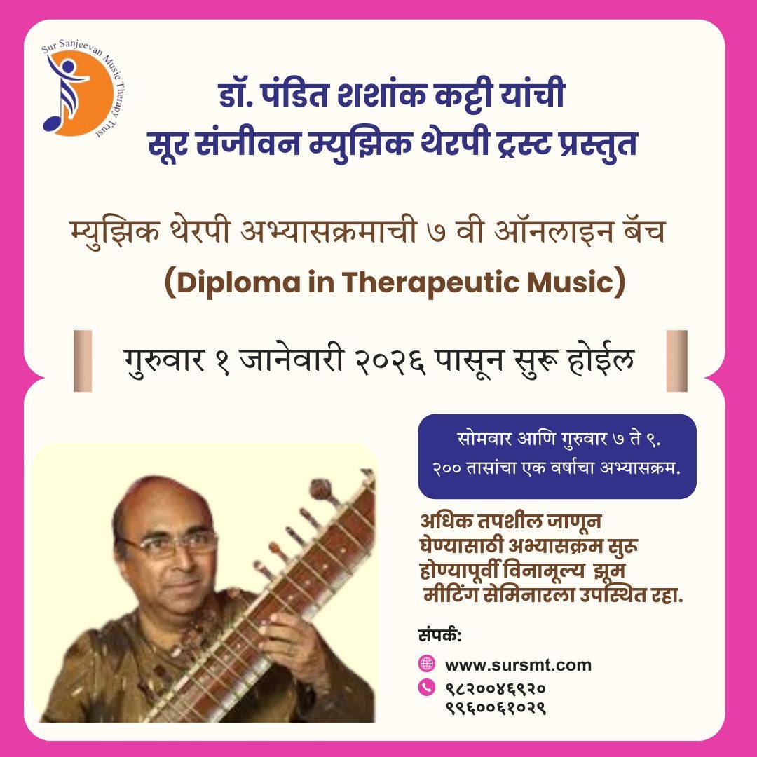 म्युझिक थेरपी अभ्यासक्रमाची ७ वी ऑनलाइन बॅच
